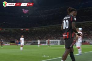 体育资讯08月18日讯 意杯米兰vs巴里,莱奥进球后,第17分钟莱奥受伤无法坚持,圣地亚哥-希门尼斯登场。