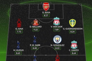 中场:库杜斯(热刺)、萨尔(热刺)、冈萨雷斯(曼城)、加克波(利物浦)