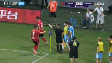 体育资讯08月19日讯 足协杯半决赛,蓉城vs河南比赛中,韦世豪向边裁疯狂抱怨,嘴上喋喋不休。