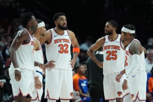 那套由布伦森、布里奇斯、阿努诺比、唐斯和罗宾逊组成的阵容表现倒也没有异常强大,但比之前的首发组合还是要好一些的(尽管样本量较小)。这套新的首发阵容在总共65分钟的季后赛出场时间里,净效率值为-3.7。