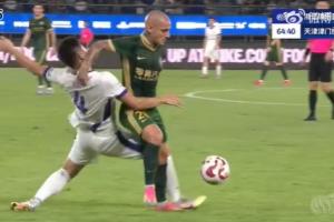 判例五:中超联赛第23轮(调赛),浙江俱乐部绿城VS天津津门虎。比赛第65分钟,浙江俱乐部20号队员手臂击打到天津津门虎4号队员头部,裁判员未判罚犯规,VAR未介入。