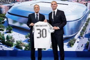 “亲爱的马斯坦托诺,今天你加入了那些来到皇家马德里的著名阿根廷球员行列。你的同胞们的才华和性格多次出现在我们俱乐部的重大胜利中。从现在起,伯纳乌球场将为你提供一切支持,直到最后。你将与那些赢得了一切并且首先是皇马球迷的球员们共享更衣室。从今天起,你将穿上代表15座欧洲冠军杯荣誉的白色球衣,在皇家马德里开启你的故事。”