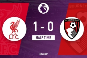半场-利物浦1-0伯恩茅斯 埃基蒂克连场破门塞内西手球未判引争议