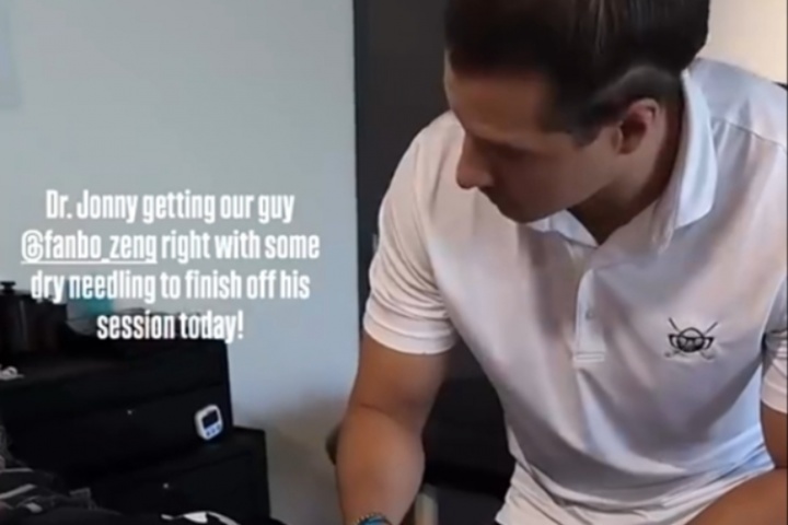 画面中,乔尼医生用干针疗法为曾凡博进行腿部的治疗。干针疗法的好处:减轻疼痛感、改善肌肉功能、促进血液循环流向肌肉和加快康复。